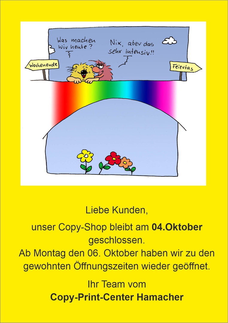 Wir sind ein leistungsstarker Familienbetrieb mit mehr als 25 Jahren Berufserfahrung in Sachen Printmedien. 1989 gründeten Ursula und Günter Hamacher die Offsetdruckerei in der Roten Hohl. Mit dem Wandel in der Druckbranche erweiterten Sie stets den Maschinenpark und die ersten Kopiergeräte kamen hinzu. Im August 2000 eröffneten Sie zusammen mit Ihrem Sohn Andreas Hamacher, nach Umzug in die Heerstraße, das Copy Print Center Hamacher. Die neuen Räume gaben genug Platz für den Copy-Shop und die Druckerei. Zusätzlich wurde das Leistungsangebot vergrößert: